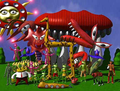 ケラケラ 巨大な恐竜みたいな生物です。ふだんはおとなしくて、寝てばかりだけど目がさめると大変!!言葉はしゃべらないようだ。