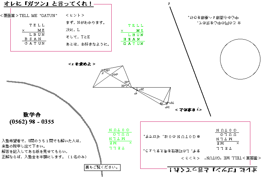 分類: 代数学 Algebra ,整数 Zahlen ,幾何学 Geometry ,角度 Angle ,解析学 analysis , ちらし関係 ,PDFファイル関係