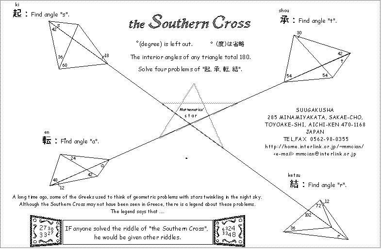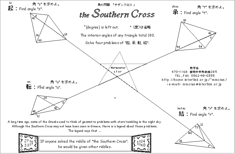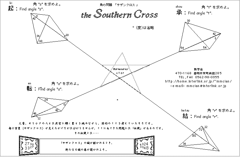 ◆ 角の問題-2 ◆ 角の問題-3:<ff2000> ◆ 角の問題-4:<ff2004>:美しき円:問題&解答 Moon&Star