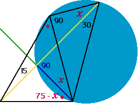 の青緑の線分が,赤い円の直径とわかったので,その円周角は90°!