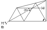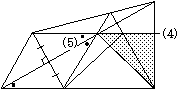 また,(4)の補助線を延長すると,直角三角形が現われる。推論を進めれば,これが直角二等辺三角形と分かり,(3)= 45°が導ける。