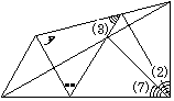 (7)=(8)がわかり,実は(8)=(3)もわかる。(対称,三角形の合同などより)