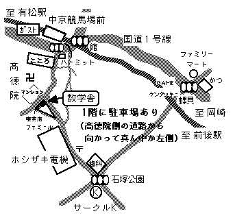 3階建ての建物で,2Fくらいの高さの所に『数学舎』という看板があります。