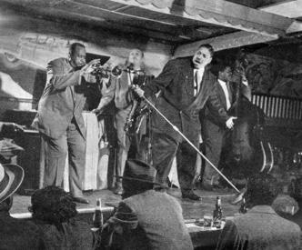 ![]() 「シェイク・ラトル・アンド・ロール」(ビッグ・ジョー・ターナー・ストーリー) こんにちわんこそば、頑固8鉄です。 クラシックなオヤジギャグで始まります第10回は、おっさんのくせに、10代アイドル雑誌の表紙を飾った、最初のオヤジ・ロック・スター(?)、ビッグ・ジョー・ターナー。 現在は、実は、ロック音楽は、ジジイ音楽といわれてまして、ロックマニアだったような世代は、もうすでに60代を突破しております。アーティストだって、ローリング・ストーンズをはじめ、還暦をとっくに過ぎた方ばかりというのが当たり前。 しかし、1955年〜1958年くらいの、ロックンロールのごく初期のアイドルたちは、常に若者でありました。エルヴィス・プレスリーは1935年生まれで、55年に有名になったとき、ちょうど20歳。 ジーン・ヴィンセントも1935年生まれ。エディー・コクランは、1938年生まれで、わずか18歳でデビューし、61年に死亡したときは、22歳でした。36年生まれのバディー・ホリーも、59年に22歳で死亡。 かなり年配な方でも、ビル・ヘイリー(1925年生まれ。1955年時点で、30歳。)、チャック・ベリー(1926年生まれ。55年に29歳。)くらいでした。 46歳のわたくしからみると、まるっきり「ガキンチョ」ばっかじゃねえか・・・なんて、これ以上言うと、「おっさんの説教」とか「オヤジのぼやき」の世界に入っていきそうなのでやめときます。 まあ、そんな、50年代当時、ヤングな(死語)イカす(死語)ロック音楽界のアイドルの、最高齢だったのがたぶんこの人。 ビッグ・ジョー・ターナー。「ボス・オブ・ザ・ブルーズ」と言われた、30年代から活躍したジャズ、ブルース音楽界の巨人。そんな、1911年生まれのベテランが、1955年、ロック黎明期に45歳でティーンのアイドルになったのです。オレだってまだまだいけるかも?(無理) ![]() ビッグ・ジョーは、音楽業界の大物、というだけでなく、その名の通りの巨漢で、185センチ、140キロ。 当時の映像を見ると、そのデカさに圧倒されますが、実は大変な苦労人。 カンザスシティ生まれの彼は、教会のゴスペル音楽を聴いて育ちましたが、わずか4歳のとき、父親を事故で亡くします。そして、街で唄を唄って物乞いをする子供時代を過ごしたのでした。 14歳で学校も中退、カンザスシティの小さなバーやクラブで働くようになります。 最初は、コック、その後、バーテンダーとして、大不況時代の喧騒の中、ジャズ音楽を支えた歓楽街の裏方として活躍するのですが、幼いころから、食うや食わずの物乞いで培った歌唱力を活かす方法はないか、と考えたビッグ・ジョー、バーテンダーをしながらブルーズを唄うようになりました。その巨体からとどろく、すさまじい大声量はどんどん評判になっていき、彼は「唄うバーテンダー」として、カンザスシティでは知らぬ者のない存在となっていきました。 そして、そんな中、ビッグ・ジョーは、当時、ブームになってきていた「ブーギウーギ(ブギウギ)ピアノ」の名手、ピート・ジョンスンとデュオで活躍するようになります。そして、これが、後の彼のスタイルを決定づけ、さらに、それによって、50年代のロック時代にまで食い込んでいくことになるのです。 禁酒法時代の1930年代、カンザスシティは、全米で最大の歓楽街のひとつでした。それを仕切っていたのは、市長、トム・ペンダーガスト。この人、我が国でいえば、○中○栄とか、○木○男とかいう感じの、力で圧倒する、ダーティなイメージの人で、ヤクザの親分が市長だったようなものなのですが、彼の方針のおかげで、カンザスのミュージシャンたちは食いつなぐことが出来たといっていいくらい、娯楽産業で街を作っていったのです。 こうして、30年代のビッグ・バンド・ジャズの時代、カンザスシティは、独特のジャズ文化を生み出します。最も有名になったのは、カウント・ベイシー・オーケストラと、ジェイ・マクシャン・オーケストラ。 ニューヨークのデューク・エリントンやベニー・グッドマンとは異なるカンザスシティ・ジャズは、ブーギ・ウーギ・ピアノ音楽を発展させた、いわゆる「ジャンプスタイル」として有名になります。ベイシーの名曲「ワン・オクロック・ジャンプ」に代表されるこのスタイルは、派手なリフを中心としたもので、熱狂的なダンス向きであったと同時に、シンプルな楽曲構造だったため、各ソリストのアドリブを最大限活かす余地があり、そのスタイルが、モダン・ジャズへの布石となったのです。 最も、有名なソリストは、テナー・サックスのレスター・ヤング、そして、その後継者として、モダンジャズの開祖となった、アルト・サックスのチャーリー・パーカーでした。 ![]() さて、そんな中で、ビッグ・ジョー・ターナーは、ホーンが中心のビッグバンドを向こうに回して、しょぼい拡声器1つでも唄いこなせる、ブルーズ・シャウターとして名をはせていきますが、中心はあくまでピート・ジョンスンと