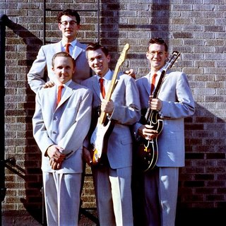 ![]() 「音楽が死んだ日」 (バディ・ホリー・ストーリー) こんにちは。バディ・堀井です。 いや・・・、頑固8鉄です。 安直すぎる「日本人偽物名前シリーズ」第2弾は、バディ・ホリー。 黒ぶち眼鏡かけたら似てるってもんじゃねええええ! といいたいところですが、 案外、誰でも似てしまえそうな、インパクトの薄い顔のホリーさんではあります。 エルヴィスのように、セクシーでもなく、パーキンズのように、泥臭くもなく、フェビアンのようなカワイイアイドルでもなく、ジェリー・リー・ルイスのようにイカれてもいない、黒縁眼鏡とスーツがトレードマークの、スマートでにこやかなノッポさん、チャールズ・ハーディン・ホリーこと、バディ・ホリーは、1936年生まれ。1959年にわずか22歳で亡くなるまでの間、厳密に経済学的にいえば、成功したのは実質1年半に過ぎないのですが、ロック史で最も影響力のあったアーティストのひとりとして記憶されています。 その影響は、特にビートルズ、ローリング・ストーンズに顕著ですが、そもそも、バディ・ホリー&クリケッツは、エレキギター2本とベース、ドラムズという編成をロック・バンドのスタンダードにした、元祖でもあるのです。そうした、歴史的な影響力の大きさから、2004年にローリング・ストーン・マガジンが選んだ、「最も偉大な100人のアーティスト」で13位に選ばれたりもしています。 ホリーが生まれたのは、テキサス州ラボックで、地理的位置から考えると、ホリーが主に聴いていたのは、カントリー、リズム&ブルーズ(テキサス・ジャンプ)、テックス・メックスだっただろうと言われています。 民族系音楽の非常に豊かな土地柄であり、ラジオから流れ出る白人、黒人、ラテンといった多種の音楽、混血音楽は、徐々に、彼自身の中でさらにミックスされて、後に特徴的なバディ・ホリー・サウンドを生み出すもとになるのです。 ![]() そんなわけで、音楽一家だったホリー家で、バディくんは、ピアノ、ギター、フィドルを習いましたが、まだガキンチョのくせにすでに地元のラジオ局で自分の番組を持っていたという天才ぶり。そして、1949年、中学時代に、ボブ・モンゴメリという男とばったり出会います。 「おっ!いいね!おまえさん!」「なんだい!おまえさんこそ!このイカす眼鏡男!」「いや、うふん、ばかーん」なんてキモいやりとりが男同士であったかどうか知りませんが、とにかく、好きな音楽で気があったふたりは、ブルーグラスっぽいデュオ、バディ&ボブとして、地元のクラブや高校のタレントショーなどで活動を開始。 と、ところが、1955年初頭、地元ラボックにやってきた、当時としては風変わりな歌手、エルヴィス・プレスリーを見て大ショック!「うわー!かっけーー!僕らもこんなの をやろうぜ!」と決心します。その時の貴重な写真がコレ←で、バディくん、しかとELVISをのぞき込んでおりまんな。(一番右のメガネさんは正真正銘バディであり、エルヴィスとのショットはこの一枚しか残されていないと思われます。)