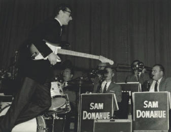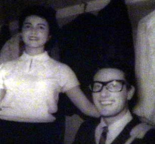 そして、次にラボックにやってきたのは、「ロック・アラウンド・ザ・クロック」で大ヒットをかっとばしたばかりのビル・ヘイリー。「うわ!なんだこのアタマの薄いおっさんは・・」と思ったかどうか定かでありませんが、そこで、バディ・ホリーは、ヘイリーの前座を務める幸運を手にいれます。それを見ていたのは、メインアクトであるビル・ヘイリーの所属するデッカ・レコードのスタッフ。そして、ホリーはニューヨークのデッカと契約することになりました。そして、1956年、映画「捜索者」(ジョン・ウエイン主演の西部劇)で、主人公が繰り返し言うセリフに触発されて作ったオリジナル曲、「ザットル・ビー・ザ・デイ」を吹き込みますが、最大手だったデッカは、ベテラン・アーティストが多く、「なに?この眼鏡のあんちゃんは?」って感じだったのか、全く無名の若いアーティストを真剣に売り込む姿勢に多少欠けており、ぜーんぜん当たりません。しかし、この初期のデッカ録音には、ふたつの古典、「ミッドナイト・シフト」、「ロック・アラウンド・ウィズ・オリー・ヴィー」が含まれています。これらは、後にクリケッツのメンバーとなる、サニー・カーティス、ジューン・アリソンとともに吹き込まれており、このころからすでに、まだ、カントリー編成バンドには珍しかった、アリソンのドラムズとホリーのギターというデュオを基礎としたスタイルが築き上げられていました。 ![]() そこで、ホリーはラボックに戻り、自分のバンド、クリケッツを結成し、ニューメキシコ州クローヴィスにある、ノーマン・ペティという男の経営するスタジオで、録音するようになります。ノーマン・ペティのスタジオは、小さな独立スタジオの先駆で、時間単位でなく、曲単位で使用料をとることにより、ミュージシャンの負担を軽くするという、当時としては画期的なスタジオシステムでした。 そこで、クリケッツを見聞きして、「イケてるぜ!」と判断した賢明なペティさん、マネージャーとなって、デッカ系列のコーラル・レコードとクリケッツを契約させます。結果、バディ・ホリーは、個人としてデッカと契約する一方、グループとして同社系列のコーラルとも契約するという異例の事態となりました。 そして、クリケッツ版の「ザットル・ビー・ザ・デイ」がついにナンバー1の大ヒット。その後、「オー、ボーイ!」、「ノット・フェイド・アウェイ」など、独特のメロディーとリズム感覚で、次々とヒットを放ったばかりでなく、バディ・ホリー個人名義でも、「ペギー・スー」、「リスン・トゥー・ミー」、「レイブ・オン」が大ヒット。1958年にはイギリスツアーを行ったりしています。 同年、マリア・エレナ・サンティアーゴというメキシコ系の女性と、なぜか初デートでプロポーズ、たった2か月で結婚。翌年初頭、ニューヨークに拠点を移したために、地元にとどまりたいメンバーの都合上、クリケッツは解散。ホリーはソロとしてレコーディングを続けるという具合に、事態はめまぐるしく変わります。 ![]() しかし、悲しい運命の日があっという間にやってきてしまうのです。 1959年2月2日、ツアー中、次の公演先へいそぐために、アイオワ州クリアレイクでチャーターしたセスナ機が離陸直後に墜落。搭乗していたバディ・ホリー、リッチー・ヴァレンス、ビッグ・ボッパーの3人は、帰らぬ人となったのです。そして、2月7日、彼らは埋葬されました。 大活躍中で、しかも未来を期待されていた若きロックスター3人を失ったこの日は、後に「ザ・デイ・ザ・ミュージック・ダイド(音楽の死んだ日)」といわれるようになるのです。 主人公が死んでしまったので、お話はこれでおしまい、のはずなのですが、そうはならないところが、バディ・ホリー・ストーリーのすごいところ。 ホリー自身はわずか22歳で亡くなってしまったわけですが、 ホリーの音楽は死ななかった。 死後に発売された、「レイニン・イン・マイ・ハート」、「イット・ダズント・マター・エニモア」が大ヒット。続いてでたベストアルバム「バディ・ホリー・ストーリー」は、その後、5年間チャートにとどまる、という大記録を打ち立てます。さらにそれ以降、10年に渡り、ホリーの未発表音源をオーヴァーダビングで、コマーシャルレベルに処理して、発売するということが続くことになるのです。 最初に出たのは、1959年、ジャック・ハンセンがプロデュースした、「クライング、ウェイティング、ホーピング」と「ペギー・スー・ゴット・マリード」で、シンプルなホリーの音源にコーラスをオーヴァーダビングして発売され、さらに最も後に残された6曲を入れて、アルバム「バディ・ホリー・ストーリー vol.2」としてまとめられました。 その後も、ホリーは、「まだ生きているアーティスト」と同じように、新曲をリリースします。 「もっとバディ・ホリーを聴きたいぜ!頼むよ!神様!」という声がどんどん高まっ