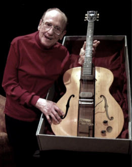 ![]() 音楽界のアインシュタイン ー レス・ポールの伝説 こんにちは、頑固8鉄です。 タイトルがタイトルだけに、相対性理論だのキンピラゴボウだのが出てきそうですが、ちと違う。でも、少し難しげな、科学っぽい話から始まります。 アカペラのように、人間の声だけで、っていうのもありますが、たいていの音楽には、楽器がつきもの。20世紀初頭ポピュラー音楽の世界で、大きな影響力を持った楽器は、10年代にブームになった、室内楽で使用される、バイオリンやマンドリンでありました。 1920年代には、ハワイアン音楽の大ブームがあり、ここでは、ウクレレが世界的大ヒット。30年代〜40年代のジャズブームでは、ピアノと各種管楽器が大活躍で、弦楽器は音のでかいバンジョーが主流、といった具合。今日、最もポピュラーな楽器であるギターの出番、というのは、極めて限られていました。 20世紀前半のギター音楽というのは、ヨーロッパ音楽の世界(フラメンコ、ジプシー音楽などの民俗音楽)とラテン音楽の世界(中南米民俗音楽)での、ほぼ独奏楽器としての使用が主流で、北米で、レコード産業を中心に発展したポピュラー音楽においては、せいぜい、管楽器ばかりのジャズバンドのバックで、ジャカジャカとリズムを刻むのが主な用途で、あまり目立つものではなかったのです。(例外は、フランスのジプシージャズ・ギタリストのジャンゴ・ラインハルトと、アメリカのジャズ・ギタリスト、エディ・ラング。) 「あー、つまんねえ・・・オレも、かっけえソロ弾きてえなあー・・」、「弾いても弾いても自分の音すら聞こえないじゃん・・」なんて、ギタリストのボヤきが天の神様だの会社の社長だのに届いたのか、変化の兆しが現れたのは、1930年代のことです。 もともとラップ・スティール(ハワイアンでお馴染みの、横置きのスライドギター)用に開発した、磁気コイル式ピックアップを、普通のギター(抱えて弾くギター。スパニッシュ・スタイルという)に搭載し、音量を電気増幅することによって、他の楽器と比較すると、極めて音量に乏しいギターの問題点を克服してからはじめて、ギターの出番が増えてきたのです。 ![]() しかし、ピックアップの搭載は、1920年代にギブソンが開発したアーチド・トップ・ギターへの搭載であったため、中が中空になっているギターの音響学的特性から、フィードバック(ハウリング)を起こしやすく、あまり音量をあげられません。また、トップ板の振動でピックアップ自体が上下運動を起こすため、ラップ・スティールのようにサステインのある、クリーンな音を出すことができませんでした。 「なんか、モコモコモッコリした、おじさんのピチピチパンツみたいなキモい音しか出ないじゃん。だめじゃん。」と思いつつ、「そうだ!スチールギターを、スパニッシュスタイルで演奏できるようなものにしちゃえば?」、と考えたミュージシャンがいました。彼の名は、レス・ポール。 ポールのアイデアは、その辺に落ちている線路の枕木に既存のギター用ブリッジとヘッドとネックをとりつけ、ピックアップを搭載するというシンプルなもので、「ログ」と名付けられましたが、この粗大ゴミ化したスチールギターのような代物がめちゃめちゃ音がよく、今日では主流になっている、世界最初の「エレクトリック・ソリッド・ギター」のひとつとなったのです。 これは、1930年代に、ポール自身の手によって、ギブソン社に持ち込まれましたが、時代の先端を行きすぎていたのか、一蹴されてしまいます。しかし、時代の流れがギター中心のロック音楽に向かっていった1950年代初頭、とうとうギブソン社によってちゃんとした形で、製品化され、「レス・ポール」と名付けられることになったのでした。 ![]() さて、いくつもの重要な発明から、今日、ミュージシャンとして唯一「発明家の殿堂」入りしている、「音楽界のドクター・○松」・・・じゃない、「音楽界のアインシュタイン」、レス・ポールは、1915年、ウイスコンシンに生まれました。 小学生時代から音楽が好きで、最初はハーモニカからはじめ、バンジョー、ピアノと手を伸ばすのですが、13歳で、ギターを演奏するようになって初めて、ギャラをもらって人前で演奏するという体験をします。 人前で演奏してウケるというのは、ものすごくトラウマ・・じゃない、大きな体験で、一度そういう目に合うと病み付きになるもの。 「オレは、やっぱ、ギターでいく!」と鼻息荒く決心したポールは、17歳でカントリーバンドに参加、高校を中退して、プロになります。 そして、1930年代を通じて、2つの顔で活動を展開することにしました。ひとつは、ジャズ・ギタリスト、レス・ポールとして、また、もうひとつは、カントリー・ギタリスト、ルパーブ・レッドとして活動したのです。 1943年にはハリウッドに行って、レス・ポール・トリオを結成。翌年、ナット・キング・コールのバックバンドを勤めた後、ビン