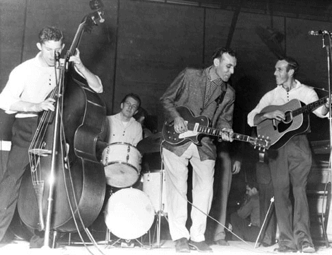 ブルー・スエード・シューズ(カール・パーキンズ・ストーリー)![]() 2回目の登場、頑固8鉄でございます。 「人に人生あり」なんていうと、あたり前田のクラッカーですが、なんだか妙に「そうじゃのう」と納得したりする、そんなオハナシがあります。 「俺の青いいスエードのクツう、踏むなよなあ〜」なんて日本語で書くと間抜けな小学生の喧嘩のようですが、プレスリーが英語で唄うとなぜかかっちょいいロックになりますから世の中不思議です。 曲があんまりかっこいいので、「俺も青いスエードの靴を買ってロックするぜええ!」と近所の「靴流通センター」あたりを回ってみたものの、ダッサダサの「ゴルフおやじ靴」しか見つからずしょげてしまったようなあなたは、迷うことなく、THE KINGのブルー・スエード・シューズをゲットすべきです!!なにしろ、こいつは「モ・ノ・ホ・ン」ですからね! ![]() さて、今は大昔の1956年4月、当時あったチャート(ポップ、R&B、カントリー)三部門制覇、すべてで全米トップという初の偉業を成し遂げた名曲、「ブルー・スエード・シューズ」。たいていの人に「プレスリーの曲」として記憶されていますが、作ったのも、ミリオンセラーにしたのも、THE KINGを愛する皆様ならご存知のとおり、カール・パーキンズ大先生! 1932年、ロックンロール音楽の創始者のひとり、カール・パーキングス、いや、これでは駐車場氏だな、パーキンズは、テネシーの極貧農家に生まれました。 当時の町役場がメチャいい加減なとこで、出生記録に「パーキングス」と誤植されてるんですよ。きっと担当者が駐車場代をどうやって払うかでアタマがいっぱいだったんでしょうね。 そんなことはどうでもいいんですが、パーキンズです。 この人もいわゆる「プア・ホワイト」家庭の出身。人種差別の激しかった当時のテネシーの片田舎で、兄弟そろって、黒人たちと一緒にコットン・ピッカーをしてたんですから、かなりなもんです。でも、これがパーキンズの音楽活動の原点になったせいで、後に南部のロカビリー、もっと後のカントリーロックを生むモトになるんですから人生わかりません。 いつも、わたつみをしながら、重労働の癒しとなっていたのは、同胞である黒人たちのブルース音楽です。 日本でブルースといえば淡谷のりこと相場が決まってますが、アメイリカアではブルースは代表的な黒人音楽。基本的にはギター1本で歌うので、わたつみ畑でもよく唄われてました。 カーター・ファミリー、デルモア・ブラザース、モンロウ・ブラザース、お染ブラザースといったように、ド辺鄙な田舎でバンドやるには、家族か兄弟がメンバーと相場が決まってまして、例にもれず、パーキンズの最初のバンドもずばり、「パーキンズ・ブラザース」。メンバーは、電気増幅したリード・ギターと唄がカール、アコースティックのリズムギターが兄貴のジェイ.、スラップのストリングベイスが弟のクレイトンという編成でした。後にロック化していったころ、クレイトンの友人で仏頂面のドラマー、W. D. ホランド(なぜかボンボン)が加入します。 「俺たちは、ジョン・リー・フッカー(黒人ブルーズギタリスト)みたいなエレクトリックなブルーズをビル・モンロー(ブルーグラスの父といわれるマンドリン奏者)風にやるのがお気に入りだったんだ。」と言うとおり、「ローレンローレン」とか「カントリーロ〜」とかいった感じとは全然違うことをやっていたわけで、後にロカビリーと呼ばれる音楽の原型だったわけです。 ![]() そんなこんなのロックするわたつみ生活の中、パーキンズ一家は台所のラジオである曲を耳にします。 ヴァルダ(パーキンズのカミさん)「あ、あんたああ! ちょっと聴いてよ! これ、あんたのバンドにそっくりじゃん〜!」 カール「なんだべか? ありゃま、ホントだわ! こりゃあ、えらいこっちゃ!」 ということになりましたが、これは「ブルー・ムーン・オブ・ケンタッキー」のプレスリー版だったのです。 やってることがクリソツのエルビスを聴いたらいてもたってもいられない。「こりゃあ、俺たちもサンとかいうレコード会社に行くしかないねえってば!」ということになり、オーディションに向かいます。 そして、早速契約とはなりましたが、エルビスと違い、ゴツゴツとデカい、どっから見ても百姓らしい風貌、くそマジメな人柄、ドスの利いた強力な田舎っぺ声のパーキンズが吹き込まされたのは、正統派ヒルビリー。 「オリジナル・パーキンズ・ブラザース」→ ところが、そんな矢先の1955年は、ビル・ヘイリーによりロック時代の幕が切って落とされた年です。 同僚であるエルビスが大手RCAに引き抜かれていくことになり、「ようし、こうなったらおらたちが南部のロックサウンドを作り上げてやるだ!」といきごんだかどうか知りませんが、次に本格的にロックする2曲を吹き込みます。 ひとつは、音楽友達、ジョニー・キャッシュがコンサートの楽屋でしたヨタ
