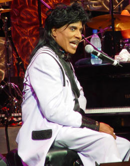 アワッババルーバッバロッバンブーン! −リトル・リチャード ![]() 「あわっばばるーわっばわっパット・ブーン!」 違う!!間違った! 「あわっばばるーばっばろっばんぶーんっ!」 こんにちは。頑固8鉄です。 1955年、ジョージア州メイコンで、父を殺され、家族を養うためにひたすら皿洗いしていた貧しいクリスチャンの黒人青年が、ニューオルリンズのバーにあるピアノの前で即興で歌った、「ワッババルーバッバロッバンブーン!」。 この意味不明のシャウトで始まる「トゥティ・フルティ」が、以後の世界の音楽史を塗り替えました。 75歳の現在も現役でシャウトする「キング・オブ・ロックンロール」、リチャード・ペニマン牧師。 ステージネームは「リトル・リチャード」です。 1955年、リトル・リチャードがスペシャルティ・レコードの45回転盤「トゥティ・フルティ」の冒頭でこれを叫び、がんがんはずむピアノと狂ったような金切り声のヴォーカルになだれ込んでいったとき、リズム&ブルーズとポップ音楽の間の壁に修復不可能な大穴があき、それがロックンロールという一大潮流となって後続の音楽シーンを塗り替えていきました。 1932年、ジョージア州メイコン生まれのリチャード・ウエイン・ペニマンは、12人兄弟のひとりで、父は煉瓦職人であり、ブートレガー(密造酒業者)、おまけにジューク・ジョイントを経営する商売人でもありました。しかし、それにも関わらず、一家は大変熱心なクリスチャンで、祖父と叔父は説教師という家庭。ペニマン兄弟は、ゴスペル・グループを結成しており、以後、彼の人生は常に教会と切り離せないものになるのです。 リチャードは、メイコン市の公会堂でアルバイトを見つけ、そこに公演にやってくる、リズム&ブルーズとゴスペルの有名アーティストをたくさん観るチャンスを得ました。 そこで観た、シスター・ロゼッタ・サープ、ルース・ブラウン、マヘリア・ジャクスンといった女性シンガーに多大な影響を受けます。また、ピアニストのエスケリータから、ホーンセクションを向こうに廻してもガンガン鳴り響くピアノスタイルを教えてもらいます。 しかし、彼は自由奔放な子供で、いつも同じ日常生活に嫌気がさしていたうえ、同性愛者だったので、父とうまくいかず、14歳で、メディシンショウの一座に養子に出されます。そして、15歳でミンストレルショウの初舞台を踏んだとき以来、リチャード・ペニマンは、リトル・リチャードになったのです。 ![]() リトル・リチャードは、全国的に有名なリズム&ブルーズの拠点であるアトランタに行き、そこでブルーズ・シャウターのビリー・ライトに出会います。 「うわーおっ!・・・な、なに?その髪型は・・・。なんで、ギタギタの化粧してんの?オォォ、マイ・ガーッ!」と言ったか言わないか知りませんが、有名な、ライトの小山のごとく盛り上がったポマードコテコテのリーゼントと、ステージでの厚化粧にびっくりしたリチャードくん。 「これだっ!オレもこうなりたいんだ!」と気づき、外見だけでなく、ゴスペル流の泣き叫ぶようなブルーズ唄法もライトの真似をして自分のものにしていったのです。そんなけなげな若者のリチャードを、かわいく思ったのか、ライト本人が気にいって、なにくれと面倒を見てくれるようになります。そして、ライトの紹介で、RCAレコードにおいて、18歳で初レコーディングに臨むことになりました。最初に発売されたのは、「エヴリ・アワー」続いて、元気いっぱいシャウトする「ゲット・リッチ・クイック」が出たのですが、さっぱり当たらず、鳴かず飛ばず。 「オレ、せっかくチャンスをものにしたのに・・ライト先生にあんなによくしてもらったのに・・オォォォ!マイ、ソウル!!!」と叫んだかどうかは神様とリチャード本人しかわかりませんが、すっかり落胆していたリチャードに、ますます悪い突然の訃報が届きます。実の父が何者かに殺されてしまったのです。 リチャードは、メイコンに飛んで帰り、家族を支える手助けをするために、グレイハウンドバスステイションのレストランで皿洗いの仕事を見つけ、働きづめの毎日を送ります。変わり者と評判でも、明るく優しいリチャードくん、苦労をしながらも、大好きな音楽をやめてしまったりはしなかった。故郷のメイコンで、新しい自分のバンドを作り、ライブ活動を始めたのです。 まず、ヒューストンにあるピーコック・レコードに行き、テンポ・トッパーズやジョニー・オーティスのバンドとともに「リトル・リチャード・ブギ」など、活気溢れるリズム&ブルーズ曲を吹き込みもするのですが、これも当たらず。 そこで、デモテープを作って、ロス・アンジェルスにあったスペシャルティ・レコードに送ったところ、スペシャルティの重役、バンプス・ブラックウェルが、「対抗会社アトランティックの擁するニュー・スター、レイ・チャールズに匹敵できるかもしれない」と判断、リチャードは、スペ