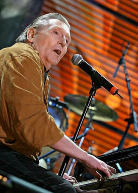 グレートボールズ・オブ・ファイア ― ジェリー・リー・ルイス ![]() こんにちは。最近久々にブギウギ・ピアノを弾いてみたら、 指に血豆ができたヤワなオヤジ、頑固8鉄です。 さて、50年代の偉大な白人ロッカーのうち、最も凶悪な男、そして、最も傲慢不遜で奇行の目立つ奇人でありながら、それを補って余りある優れた才能ゆえに、今日でも大活躍しているアーティスト。 憎まれっ子世にはばかる、悪いやつほど長生きする、というのを地でいっているようなものに見えますが、実際はいい人なのかもしれません。その当たりは、芸能界の裏の裏みたいなもので、誰にもわかりようがないのですが、音楽的才能のすごさだけは、誰が聴いてもわかる、そんな人でもあります。 震えるようなシャウト、恍惚とした顔、振り乱した金髪、椅子から立ち上がり、たたきつけるように弾くピアノ・・ 初期ロックの偉大なパイオニアのひとりであり、また、カントリー&ウエスタンの最大のアーティストのひとりでもあるジェリー・リー・ルイスは、ローリング・ストーンが選ぶ最も偉大なアーティスト100の24位に選ばれるなど、歴史的な人物であり、また、今日でも現役のアーティストでもあります。 「ロック界の最も偉大な奇人」、「ザ・キラー」こと、ジェリー・リー・ルイスは、1935年、ルイジアナの極貧農家に生まれました。最初は、2人の従兄弟、ミッキー・ギリーとジミー・スワガートとともに、ピアノを弾きはじめ、ジューク・ジョイントやラジオから流れてくる黒人音楽を聴きながら、ブギウギ、リズム&ブルーズ、カントリーなど様々なスタイルを独学でマスターし、それらをミックスして独自のスタイルを創り出していきました。 「オレは、オレ。誰にも影響なんか受けてないぜ。」と言っていたそうですが、デモテープなどを聴くと、カントリー・ブーギのピアニスト、ムーン・マリカンやメリル・ムアなど影響を受けた、正統派のカントリー・ピアノに近いスタイルだったようです。 母は、音楽好きの息子のため、「神様のためにゴスペルを唄いなさい」と、ルイスを神学学校に通わせます。 ところが、教会で、当時は、卑猥だ、エッチだ、エロすぎだ、などと言われていたブギウギ・ピアノを弾いたりしていたので、さあ大変!! 先生「ジェリーくん、君は、悪魔の音楽を続けるつもりか?なら学校を辞めてもらうことになるぞ。」(ジャック・バウアーの吹き替え風の声で) ジェリー「ええ、そうします。だけど、おかしいと思いませんか?僕を学校から追い出した音楽と教会でやっている音楽は同じ音楽なんですよ。違いは、悪魔のために唄うか神のために唄うかっていう気持ちの違いだけです。もし、僕が悪魔のために唄っているっていうのなら、それでもいいです。」(ディランの吹き替えの声、もしくは、なだぎ武の物真似で。) ってな感じを想像してみてください。 先生が「そ、そうかああああっ!そういえばそうだなああっ!気がつかなかったぜええ!」 などと言うわけもなく、ルイスはあっさり放校処分になってしまいました。 まあ、しかし、社会の枠組みにとらわれず、子供時代から物事の本質を鋭く見極めていたからこそ、自由奔放に生きる、そういう精神をこのころから持っていたということでしょう。まさに、ロック魂、というのはこういうことを言うのではないでしょうか。 そんなわけで、ルイスは、ミシシッピのクラブでピアニストとしてプロフェッショナルな活動を始めます。 そして、1954年、デモテープをもって、ナッシュヴィルに行くのですが、うまくいかず、1956年、ルイスはメンフィスのサン・レコードのオーディションを受けます。 そして、カントリー曲を、アクの強い、独自のスタイルで演奏するソロ・アーティストとして、また、サンにいた他のアーティスト、カール・パーキンズやジョニー・キャッシュの伴奏ピアニストとして在籍することになるのです。伴奏者としてのルイスは、パーキンズの「マッチボックス」や「プット・ユア・キャット・クローセズ・オン」、ビリー・リー・ライリーの「フライング・ソーサーズ・ロックンロール」などの名盤で聴くことが出来ますが、当時、ロカビリーにピアノが入っていることは珍しく、ルイスの参加後、多くのロカビリースタイルのアーティストがピアノを入れることに積極的になります。ルイスはロカビリー・ピアノの元祖だということも出来ます。 1956年12月、エルヴィス・プレスリーがサンを脱退した後、ルイスは、自分のシングル「ホール・ロッタ・シェイキン・ゴーイン・オン」、「グレート・ボールズ・オブ・ファイア」(火の玉ロック)などを吹き込み、これが大ヒット。しかし、あまりにセクシャルな内容とパフォーマンスだったため、ラジオ曲はかなりかけるのをボイコットしたそうです。 ![]() 「ったく、今のオトナはようー、だっせえなあ。どこがいけねえんだよ!おまえらだって女と寝るだろうが!くだらねえイ