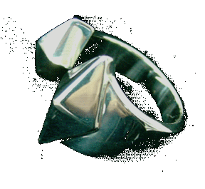 | ★七鉄のアイテム紹介コーナー KSR-002 「DOUBLE-DIA RING」 ダブルダイヤリング」 フィフティーズスピリッツの“生きた”アイディアが光るTHE-KINGのアイテムじゃが、今回は、フィフティーズの代表的なシンボルのひとつであるダイヤをモチーフとしたリングを紹介しよう。ダイヤを表す縦長の菱形といえば、世間一般的に認知されている登録商標みたいな形じゃ。このあまりにも有名なダイヤの菱形をアクセサリーに転用するとなると、これはヒジョ〜にむずかし〜作業だとわしは思うぞ。四つの角の鋭角度、天地左右への広がりの比率をひとつ間違うと、それはもうお子ちゃまのお絵かき以下のレベルになってしまう。更に立体となると突起度(前方への飛び出しサイズ)も絡んでくる。鋭角度、天地左右の比率、突起度の組み合わせは膨大にあるが、その90パーセント以上はダサダサとなり格好いい組み合わせに至ることは稀であろう。これは永遠に解けない数式みたいなもんじゃ。それだけにダイヤの菱形に取り組むことは簡単なようで困難極まりないのじゃ。 |