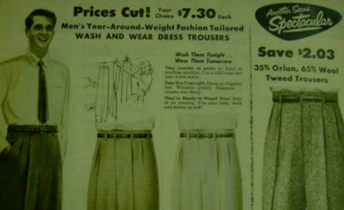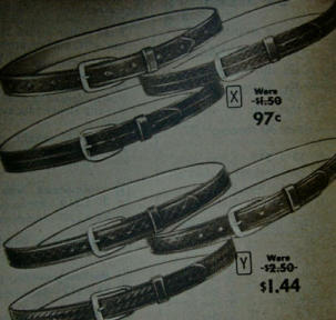 | 1950年代のシアーズカタログより。なぜかこういう細身のベルトが現代には少ない。パンツのシルエットがまた美しい! | ||||