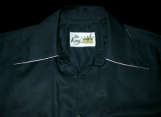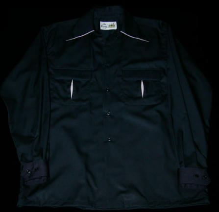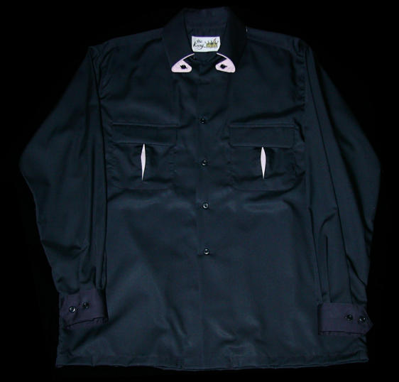 in the feature of this shirt. The name is ROLL BUTTON-DOWN SHIRTS, The shirt of the American 50's style to which this joke works is that everyone pays attention to the unique collar. The cloth of the base is black cotton. A baby pink color was casually treated in the back of the collar and the pleat part of the box of the pocket. Putting on by an untouched style is good and using the necktie for rough like ELVIS is good. And it is also good to unbutton, and to extend the collar. It is a shirt that can be put on by various styles. MADE IN TOKYO |