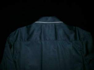 襟のボタンを外すと、イカのえんぺら型みたいなビックな襟に 変身! 一粒で2度おいしいシャツだ。 |