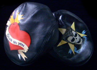 | 炎のスポットアイテムコーナー ガンコ七鉄先生のバーナーのイラストを手掛ける、元ブルーリバース、SKINNYSのボーカルリスト、また原宿ペパーミントさんの店員でもあった柳谷 竜二先生によるカスタムレザーペイント。こちらの先生の場合、気分がのらないとまず描かない為、大変レアでありこちらは1点限りのアイテムとなります。 ★牛革製ハンチング (MADE IN JAPAN) バックに調整金具付き |