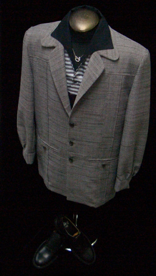 | ジャケットを羽織り、ボタンを掛けると単なるブラックのイタリアンシャツにしか見えないのがミソ。 |