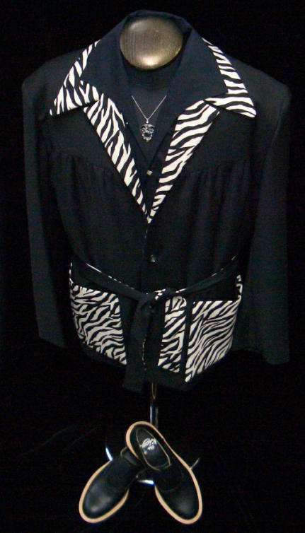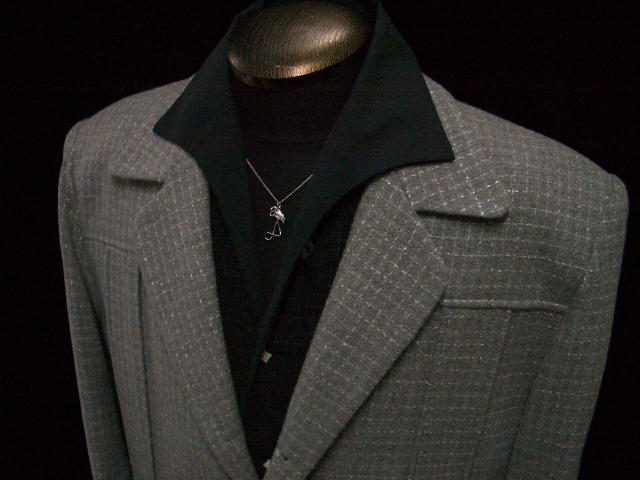 | SP-084のジャケットに合わせてみました。ブラック攻めだけに ゼブラが浮きロック的着こなしに思う。ペンダントはギターピックペンダント。 |