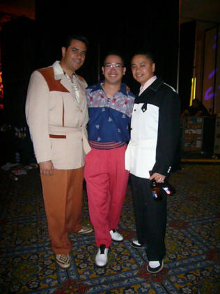 | 番外編 旅番組のレポーターは、おいしいものばっかでズルイぞっ! なんて思わずにいられない今日この頃、皆様いかがお過ごしでしょうか? アブラがノッテるからうまいだの、適度にアブラが抜けてておいしいだの、んじゃ〜アブラのバランスっていうか分岐点っていったいどこにあるんじゃ! なんてホザいていた今日この頃でもあります。ポマードのアブラはゼンゼンOK!として、そもそもアブラ・ギトギトの大トロなんて、量をそんなに食べられるもんじゃないでしょう? ウマイものとは、とにかくイッパイ食べられるものであり、マグロならダンゼン赤身なわけねぇ〜なんて力説していた矢先に、ブラウン管の向こうでは、ギャルソネちゃんが大トロをバクバクたいらげちゃってるであ〜りやせんかっ、しかも彼女曰く大トロの方がおいしいという・・・・。この瞬間、アタシャの主張もハイ、ゴクローサン!となりましたっ。それにしても彼女はなぜスリムにもかかわらず、あそこまで食せるのか? また、たらふく食べた直後でもなぜスリムなのか? う〜ん、これもヒジョ〜にミステリーですなぁ〜。 ○キロ分食べてもその分体重増えたように見えないゾ、なぜ、なぜなのぉ〜 2007年度のGWはいかがでしたか? ま、まさかウイスキーと氷をがっちり用意して、部屋を暗〜くしちゃったりなんかしてYOU TUBEでロッカー達のレアなモノクロ映像を鬼のようにさらっていたなんて事はないでしょうなっ。 っつうか、それアンタだろって!? うっ、なぜそれを! 視力がマイナスになりそうな勢いで映像にかぶりついておりまして、やっぱハマるでしょう、あれぇ〜。熱烈なFANの方による編集モノなんかもありますが、やっぱFANの方ならではの目線でうなづけるものがあります。ELVISバックに花の映像なんかが出ると、これは女性の方による編集だななんてエラそうに推理までする始末で困ったちゃんでございました。いかんせん、貴重な映像を一杯やりながら、観れるわけですから、た・ま・り・ま・せ・ん。ヴィンセントにエディにカールのお父さんのショーや、観客のファッションなんかを観てると、もはやきりがなく、もうどうにも止まらない状態に。母親に「ゲームこれまで」って叱られるお子ちゃまの気持ちが、ここへきてようやくし死ぬほど解った気が・・・・ ![]() ふぅ〜YOU TUBEで刺激を受けるのも結構でございやすが、ナッソーほど刺激が走るジャケットをアタシャは知らない。材料屋のおばちゃまに「お客ハン、それは御婦人の生地どすえ〜」だとか言われても、確かなフンイキと確信すれば、レディースものであろうがお構いなく仕入れますよ。また、生地によっては表地より裏地の方がキテルものがあったりすると、勝手に裏を表にしたり(あえて)、また今回のように横ジマのラインっぽくしたいが為に、向きを変えたりっと・・・・こういうのを昭和一ケタ生まれのテーラーのガンコ六徹的なご主人なんかに口にしちゃったすると、ちょっとアンタ! 何て事を!! 仕立てをナメとるんかっべらぼうめ! お〜いバァーさんやぁ〜シオ持っておいでーになりかねないんですな、これがまた。もちろん、素晴らしい仕立ても当然求めるわけなんだけれども、THE KINGが求める第一優先はムードなるものだ。 んま、お堅い話はさておき、うれしい写真がUSAのMR:Johnny(写真右)より届きました。ラスベガスのイベントでエンジョーイされたとの事です。ベガスでループナッソーを羽織ってくれてどうもありがとう! おっ、真ん中のMR:FURUKAWAはフラップシューズを! トコトン道楽を楽しまれておりますなぁ〜。瓶ビールもおいしそう。 さぁ〜今夜はビールから芋焼酎に切り替えて、またYOU TUBEさんを訪れてみますか。では、シビレる夜を! |