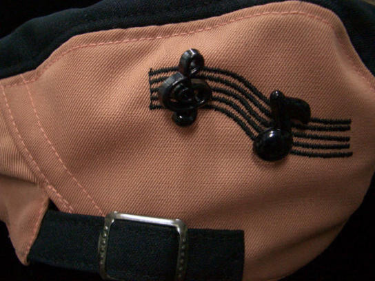 たかがワンポイント、されどワンポイント。五線譜だけの為に いちいち刺繍を用いた点がワンポイントだ。 |
