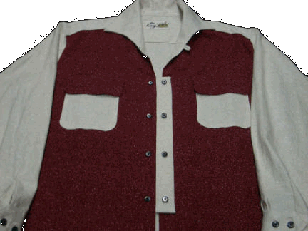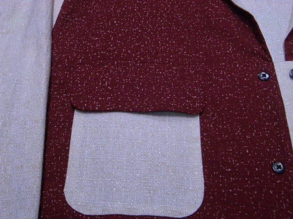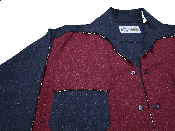 EDITION !〜 2007年度の最後のシャツは、エンジのネップ風プリントを差し込んでの眩しいツートンカラーのイタリアンカラーです。フラップポケット部ではなくポケット部を切り替えたという斬新なデザイン!素材は共にコットン、このシャツだけで充分威力なるものはあり! たたみかけるのであればやはりジャケットはNassauであろう! 共に抜群のムードです。 MADE IN TOKYO |