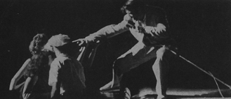 | わしがこの説に魅入られたのは、「ムシケー」における神子と村人たちの関係性こそ、ロック創成期にみられたロッカーと聴衆との関係性そのものであり、「ムシケー」の音楽のあり方こそ、ロックの原点だと思えたからじゃ。 文明の進化とともに、「ムシケー」のような原始的なお祭は衰退していったが、ロック・ミュージックの誕生によって「ムシケー」は恒久の時を経て劇的に復活したんじゃ! これは人類文化史上における奇跡じゃぞ!! つまりエルヴィスがメジャーシーンへ登場した当時のロックってもんは、聴衆にとって崇高で神聖な音楽であったということじゃ。 聴衆はロックに群がり、願望を訴え、ロッカーの表現すべてに生きる意味、人生の方向性を求めておったんじゃ。 これをわしは「ロックによるムシケーの第一次復権」と呼んでおるのじゃ! い、いかん! つい力説し過ぎてノリがミスター・イシアタマ八徹教授的になってきたぞ。 まあまあ諸君はアタマをやわらか〜くして読んでくれたまえ。 |