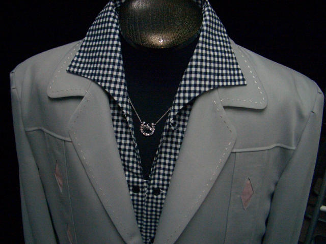 | TSH-022のイタリアンシャツと。チェックのシャツでも決してうるさくならない。 ホースシューペンダントがまた実にシブイ。 |