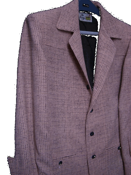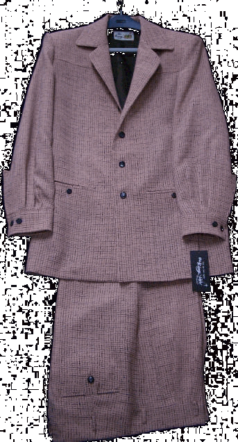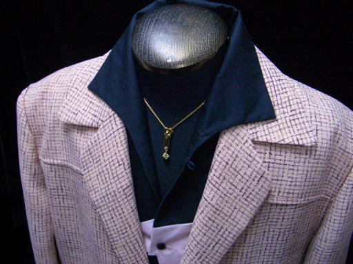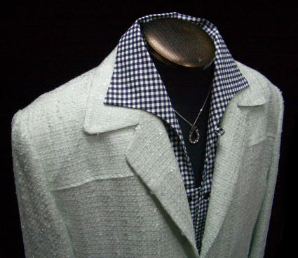 | チェックのイタリアンカラーでメリハリを持たせてみました。 胸元のホースシューペンダントはかなりの人気品。 |