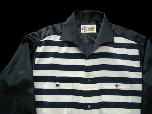ELVIS PRESLEYの真の凄さが存在します。これはビリー諸川大先生が御自身の本の中でもおっしゃられている事でもあって、「如何に当時からミュージシャンとして進んでいたか、優れていたか」を物語っているのであります。およそこの一年後、映画「監獄ロック」でボーダーのシャツを着て、JAILHOUSE ROCKを歌うというアタシャの好きなシーンが訪れるわけであって、もちそれを今回意識した事はもう言うまでもない。ここでは、あ・え・て・イタリアンカラーでいかせて頂きました。ボーダーもまたロックンロール的ファッションと言えますね。 あっ、それと、今回の表紙のGENE VINCENT and his Blue Capsのもはや号泣モノの写真は、 GENE VINCENT Int.Fan Club Japanの会長が昨夜悪天候の中、ご足労頂き我々の為にご提供頂いたものである事を ここに記して感謝申し上げます!! 次回をもちましてアタシャ、皆様とお別れの時期がやってきたようです・・・・・・・・えっ! 中国ぅ? 冗談じゃない!!! んなとこ行きませんよん! |