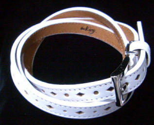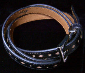 BLUE SUEDE SHOESを作る、とっくの以前にこんなハンチングもあった。色もあせ、すっかりヴィンテージ化してしまっているが、そこはお許し下さいね。これを製作してくれた優しいおばちゃまが要らした帽子屋さんそのものが、今は無く、こうしてモノが作れなくなっていくんですよぉ〜っこの場て嘆いている場合でもないようなので、はい、つぎ! | これは最近のもの。ダイヤカットベルトのいわば試作品1号!皆様が好まれるダイヤ柄にドットをミックスさせてやったもの、ちょっとうるさすぎに思えて、残念であるが却下・・・。こういう実験代金が恐ろしい金額となって、時に月にでもハダシで逃げたくなるもの、それをやってしまったら全てが終わる。いろいろ苦労しているヒトコマでしたね。 | ||||||||||||||