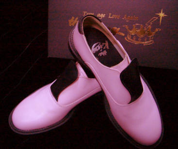 泣く子は黙り、大人は泣きが走る、問答無用のフラップシューズのBLACK×PINKの8インチ。シューズでとにかくお世話になっているナゾのオトコ、Mr ドクターマーチン大センセイがTHE KING FANSの為に、気前よくご提供して下さった涙のお品。ともなると大センセイには接待が必要で、「吉原も悪くないのぉ〜」っと言われそうで、アタシャは日々ビクビクしておるぞ! | ||||||||||