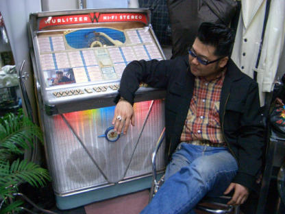 | 埼玉県在住の大木様(通称 たっちゃん)をご紹介させて頂きましょう。ラブテン閉店でお気に入りの場所を1つ失ってしまったぞって力説された大木様は48歳で職業はバスの運転手さん。とにっかく、このお方はありとあらゆるファッションメーカーを知り尽くしており、軍モノ、50's、アロハ、ローレックス、元モーニング娘の飯田の圭織っちゃんとそのこだわりのワクもハンパではな〜い。キャデラックは58年型がベストだとか、ブライアンセッツァーもいいねぇ〜っとくる、つかみどこのない、超ツワモノのオールマイティープレイヤー! 172cm