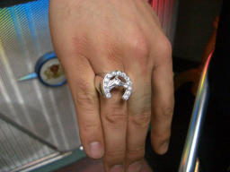 | あ、あらっ!? どっかで見たお方と思いきや、Mr.LOVE ME TENDERの船橋氏。 その視線の先には、閃光を放 つがごとくまぶしいリングが輝いてるで、あ〜りませんかっ。お、恐れ入ります!! この後THE KING商品企画大会議が開催され・・・・っという事はまずなく、近所にある昭和25年からやってる銭湯へGO! その後、酒処にGO GO!!というスーパーフルリラックスコースをご堪能。 たこぶつにきのこのサラダというあっさり系のアタシャとは違い、氏はパーティーアラカルト並みのフライ盛り合わせに焼きおにぎり・・・やはりパワフル!! |