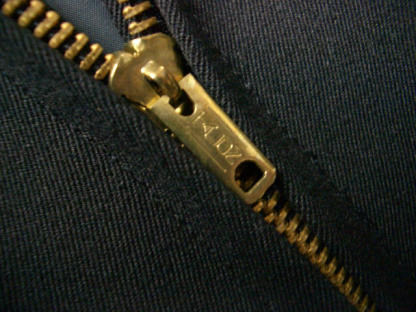 REBEL JACKETにおいても使用したTALON製ジッパー。滑らかに、優しく動く我らのニッポンのYKK製に比べるとこちらはガッチリ派のMADE IN USAじゃ。 | この手のブルゾンのキメテはじゃの、着丈に対して、袖丈が長めにある事なんじゃ。あくのでもコシで着ておいて、袖はゆった〜り!っなわけでこのシルエットが生まれるんじゃ。 | ||||||||||||||||||