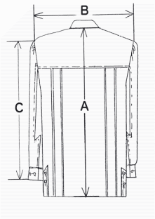 | A.着丈(Length) | B.肩幅(Breadth of its shouders) | C.袖丈(Sleeve Length) | 胸囲(CHEST) | PANTS WAISTp | ![]() |