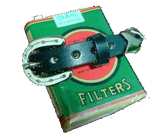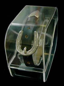 | 〜ロカビリアンからオシャレな女性まで〜 腕時計感覚で身に付けられる、ホースシューブレスが誕生致しました!西洋のラッキーシンボルにあたるホースシューに、こだわりまくってきて、はや10年のTHE KINGが、これまで唯一発表しなかったアイテムがブレスレッドで、その出来はズバリっ、シンプルでもありクールでもあります。 バックル部が蹄鉄デザインとなっており、さりげなくROCKを主張した細身の皮ブレスなのだ。ロカビリアンからオシャレな女性までジャストフィット致します。電車のつり革などを持たれた際、こんなブレスをチラッと魅せられたらヒェ〜です! オシャレな方へのプレゼントとしても喜ばれると思います。 KZ-009 HORSESHOE BRACE 皮全長 24.5Cm 皮幅 1.2Cm Horseshoe 部 Uの字型の高さ 3Cm 留め穴 7つ 剣先付き 専用アクリルケース付き \6,090(税込み) NEW ! SILVER MODEL \25,200 NOW ON SALE |