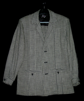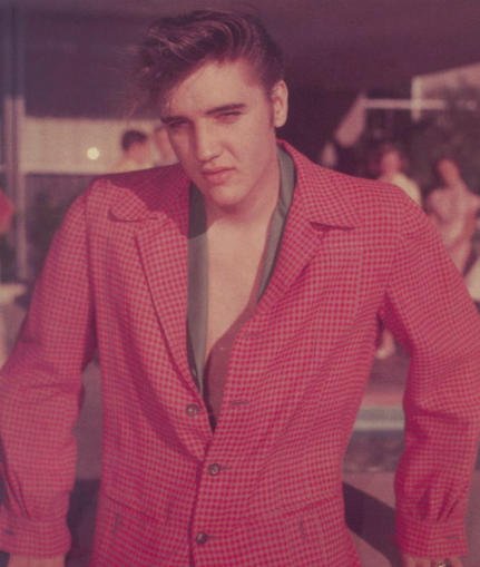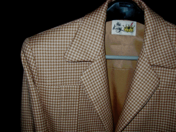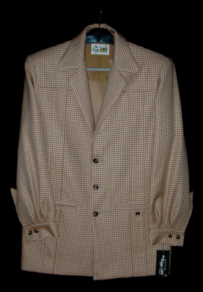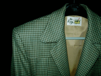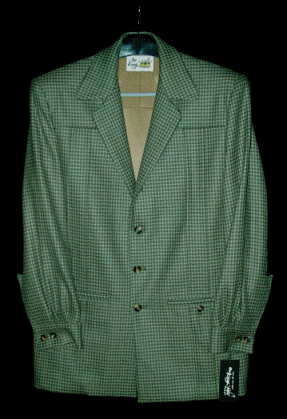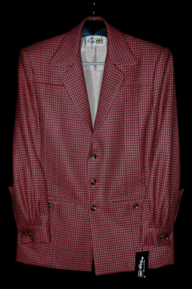 チドリのナッソーっていうと.....上の写真にもありますが、何て言ったってあのThe King ELVISが羽織っていた例の赤いヤツです!プールサイドでロック界の王様が何気に羽織れば、これぞ究極のフルリラックスジャケットだと言わんばかりに思えてしまいます。んでもってEDDIE COCHRANが、ナッソーに身を包みグレッチギターを抱きかかえてステージシーンに登場すると、今度はこれぞ永遠なるロックンロールジャケットとも思えてなりません。 さて、チドリナッソーっていえば、昔初めて手掛けさせて頂いたその第一号が、チドリ格子柄のナッソージャケットなのです。(右 写真)こちらは今や懐かしい想い出の品となっておりますが、改めていま原点である第一号をみると、まだまだ完成度的には大味でした...。腕わたり辺りは、もっとタップリあって良いですし、カフスにおいても、悪魔的トンガリはここでは表現されておりません。ポタン選びもまだ甘かった気も致しますし、フロントボタンも4つがベターである事に、この段階では気がついていない。 それでも、当時は当時で非常に熱かったです。なぜ、第一号がチドリナッソーであったかというと、やはりELVISのチドリナッソーが、頭から離れなかったからであって、事実メンフィスのビールストリートに在籍していたランスキー(ELVISが服を買っていた有名なSHOP)や、SUNスタジオにもこれを羽織って、そりゃぁ〜飛び込んでいきましたよ! |