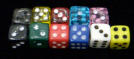 | 5mm DICE(全11カラー) 上段より クリスタルダイス クリア、レッド、ブルー、ピンク 2段目 単色ダイス ブラック、グリーン、レッド、ブルー、ホワイト、イエロー |