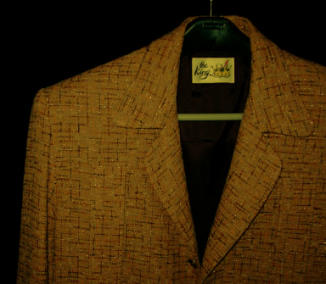 | 番外編 Take It Easy! Nassau Jacket! ナッソーはやっぱチョット大きめにガツン!もしくは、サクッ!ってなノリで羽織るのがイキだわねぇ〜・・・なぁ〜んてヌカしながら氷を指で回しながら、こちらにおきましてはグビッ!ってな勢いでやっちゃってる今日この頃です。ってなワケざんして、お久さしぶりで〜す。 えっ!? Nassauの魅力ッスかぁ〜?この期に及んでまたかいなっ。う〜ん、通常のジャケット丈よりやや気持ち長めの着丈にまず惹かれますなっ。もち、アタシャ的にでっせ。現代のジャケットにはこの丈はなかなか無いんだわね。ハーフコートやエドワードジャケットまではいかない微妙な長さだ。んでもって、袖部は上腕部がタップリあるのに対して、袖口はシャツみたいに絞り込まれている・・・・この何て言っていいのか解らんメリハリ度みたいなものにもクラクラ致します。上のELVISの写真でも、上腕部あたりはタップリしてて、この辺りがこのジャケットが妙に着易い秘訣であるとみているんですよ。また絞り込まれた袖口からヒジに向かって3発の美しいタックが流れているジャケットなんて、変わっているでしょうがぁ。(シャツでないのよぉ〜)肩には今時こんなでっかい肩パットかいな、みたいなパットが裏地で見えないけど、仕込まれております。んまっ、要するに「変り種」っていうヤツがただ単に好きザンスっていった所と、この特有のジャケットには何か自由なるモノや刺激を感じてしまうんです。こんなもんでイイっすか? ふぅ〜。そういえば、最近リラクゼーションなんていう言葉を聞きやすが、これぞリラクゼーションジャケットにも思えますなっ。 え!?ズボンはどんなのがエエかだって?そんなもん、本人の自由ジャンよ! Nassau suitに越した事はないと思うけど、今回のチドリタイプのモノに対してパンツもチドリじゃ、お目目チカチカになるワケね。これは相手の視力低下にも繋がるしヤバイっすな。ガラはともかく、やっぱ太いパンツがハマルと思いますね。裾上げは、3.5センチくらいの今時少なくなったダブルね、ガゼン!ビンセントみたいに5センチくらいで履いている方を見ると、やっるぅ〜!ただモンでないね、おタクぅ〜というパターンに。また、細身のジーンズなんかの上に、サクッと羽織るのも粋ですねっ。 何でも教室に爆発物なんて持ち込まれちまって、子供達にとってもえらくデンジャラスな時代が到来してきてしまった事は、幾らなんでも非常にヤバさを感じております。皆さんいかがなもんでしょうか?どうなるんだニッポン!このままでいいのか、この国は! あらまっ、「酔い」が襲ってきたでござる・・・。 倒れないうちに言っておこう! Nassauを羽織ると自然と肩の力が抜けて、世の中に対してもうチョット気楽に行こうぜっ的な気持ちになれるんだわね。つまり、Take It Easy! Nassau Jacket!! なのだ。 お後がよろしいようでっ! |