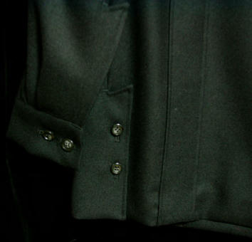 | まるでトラが牙を向いているかのようなカフス&サイドベンツの カットパターン。50's CARのテールフィンぽくもありますね。 |