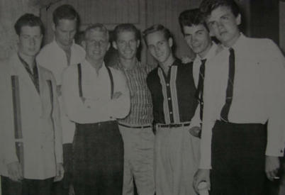 | Mr:Gren Gren氏(写真左)のナッソーは、型はEDDIEやELVISの有名なヤツと同型に思われるが、前身ごろの2トンカラーラインにひとくせあり。尚、全く同型でカラーラインなしのバージョンも着こなしていたほど。右はエバリーブラザーズ、1958年。 | |||||