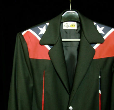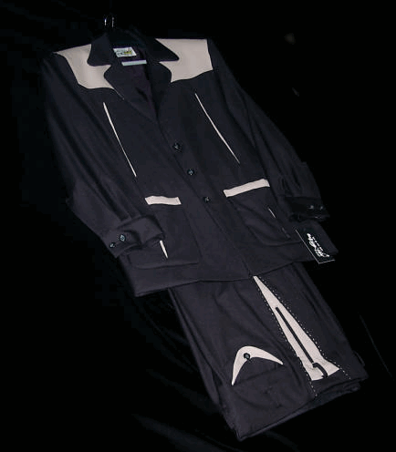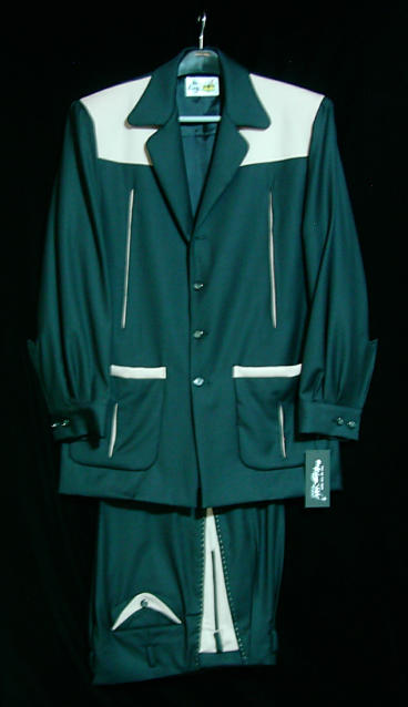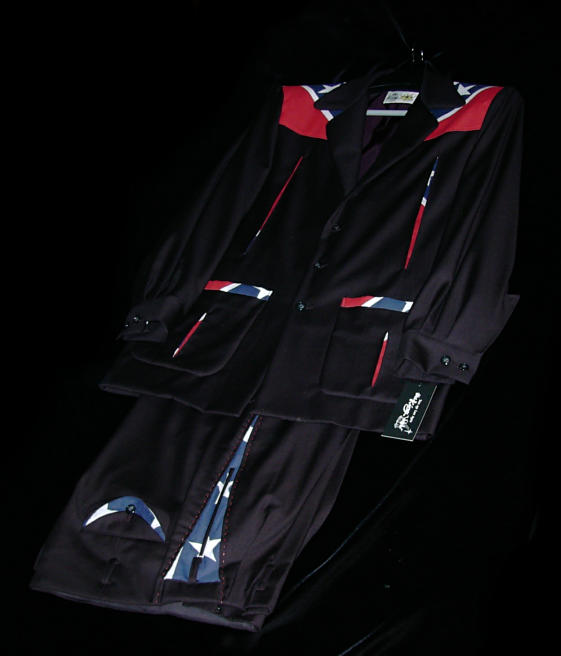 | 決して派手過ぎず、また地味でもない、自由あるRockabilly Suit !ナッソージャケットにピストルパンツというかつて前例のないシルエットだ! | ROCKABILLYのシンボルとも言える南軍旗の一部を所々に飛ばしたスペシャル。ピストルパンツのタブルハンドステッチは赤糸でインされております。 | ||||||