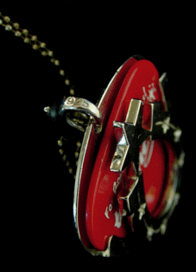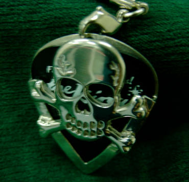 & 1.2mmボールチェーン( SILVER 925) THE KINGピック Red & Blackの2枚付。総重量 11g ピックケース部 最大高 3.3cm 最大幅 2.7cm 最大厚み4mm チェーン長さ50cm (長さ指定可能) ケース付 \15750 (税込) |
