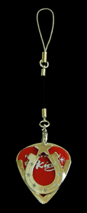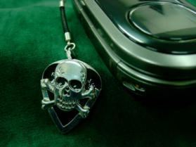 」 VOL.2 〜ドクロ・ヴァージョン〜 「ワンスターホースシュー」に続く第二弾「ドクロヴァージョン」が登場。 携帯ストラップには複数のお気に入りのキャラを装着して楽しむことがハヤリとなったが、 一発でビシッと自己主張したい方にオススメなのが、このドクロ・ストラップだ。 デザイン化されたドクロは、 近年はロック系アーティストがファッションパーツに多用していることから脚光を浴びているが、 中世から近世にかけて世界中の海を荒らしまくった海賊のシンボルとして登用されことがその起源とも言われている。 決死の覚悟で大海原での人生に賭けた男たちの果てしなき野望が、ドクロに封印されているというのだ! モバイルが日常生活の必需品となった今、ストラップこそが自己を主張する最も身近なモノといえよう。取り出す度にドクロのストラップが揺れる、これこそシブクて新しい身だしなみだ! もちろんペンダントとして装着してもよし。 胸元をキリッと引き締めるドクロペンダントに相手の視線が釘付けになった時、 そしてさらりとギターピックを取り出す時、 そこからロッカー及びロック好きのメッセージがスタートする! |