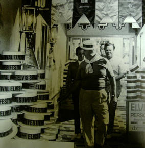 | 「君の100万ドルの才能を100万ドルの現金に換えてみせる」というパーカー大佐の50年代。 | 有言実行され今度は自ら映画の広告塔、歩く宣伝マン状態のパーカー大佐の60年代。 | ストローハットなどの当時のコンサートグッズでまだまだ商売継続中状態のパーカー大佐の70年代。 | ||||