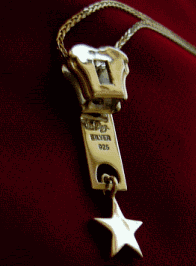 | ★七鉄のアイテム紹介コーナー KSP-020〜022 「ZIP PENDANT」 ジップペンダント 50'sはもとより、よりスペイシーに(広大に)、ヒストリカル(歴史的に)にアメリカン・アイテム全般を追求する本格的&コアなファン注目の作品をご紹介しよう。ジッパーとスター、ホースシュー、ダイスを巧みにコネクトさせた「ZIP PENDANT」じゃ。 ジッパーは、1891年にシカゴの靴職人が、シャープなデザインとフィット感を追求した末に考案したスグレものであり、当初は「スライド・ファスナー」と呼ばれており、それが開閉する際の「ジー」という擬音から、1921年になって「ジッパー」と改名されたのじゃ。それから5年、1926年になって「Lee」ジーンズにも転用されたのじゃ。ジッパーはアメリカで生まれ、アメリカのファッション文化を育て、そしてアメリカから世界のファッション業界に普及した正真正銘のオリジナル・アメリカン・アイテムであ〜る。 しかしながら、音(サウンド)をネーミングした古きアメリカン・アイテムを「ロックン・ロール・アイテム」として起用し、アメリカのシンボルであるスターとともにコーディネイトするアイディアは、まさにTHE-KINGならではのクールでひねりの効いた実に心にくい仕業じゃ。 SILVER 925製 変色防止ロジウムコート付き チェーンは45cm。部分的に輝くスペシャルなチェーンを仕様。(御要望により60cmまで可能) ZIPPER SIZE(下部パーツを除いて) 最大高さ 2.5cm 最大横幅 1.1cm 縦長長方形部 縦 1.8cm 横6.5mm 重さ 6g 各\18,900 (税込) GOLD仕上げ \22,050 (税込) |