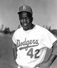 え〜最初にタネ明かしをするようじゃが、これからピックアップするヒーローたちは、偶然にもエルヴィスのメジャー・デビュー直前、直後に現役を退いておったのじゃ。 つまり「後はお前さんたちに任せた!」とばかりにエルヴィスをはじめとするロックン・ロール・スターたちに、ヒーローという名のバトンを渡した者たちだったのじゃ。 真のヒーローとは、その登場はもとより、その見事な引き際まで神様によってコントロールされているってことなんじゃろうか。 ではロックン・ロール・スターたちはどんなバトンを受け取り、どんなスピリッツを受け継いだのじゃろうか? そんな視点をもって読んで頂けるとありがたい。 【メジャーリーグ界編】 ★アメリカン・ブラックたちの不滅のヒーロー★ 〜黒人初のメジャー・リーガー、ジャッキー・ロビンソン